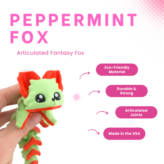 SugarCube The Peppermint Flexi Fox 7.5 Inches - 3D Printed Fantasy Creature - Articulated - Candy Themed Animal Desk Decor