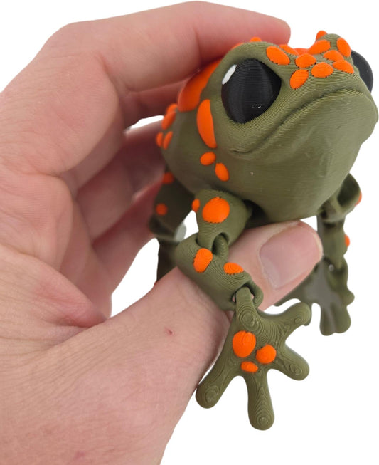 3D Printed Articulated Toad Figurine, Fluorescent Orange or Green Spots, PLA Material, Flexible Limbs