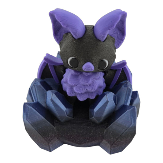 Adorable 3D Printed Pixie Bat with Crystal Stand – Purple and Black Fantasy Creature Decor