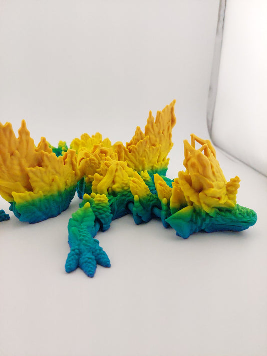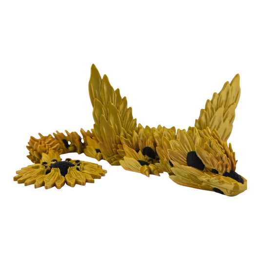 19-inch 3D Printed Articulated Winged Sunflower Dragon | Gold Gradient Silk PLA | Openable Wings 7-10 Inch Span | Unique Articulating Figurine