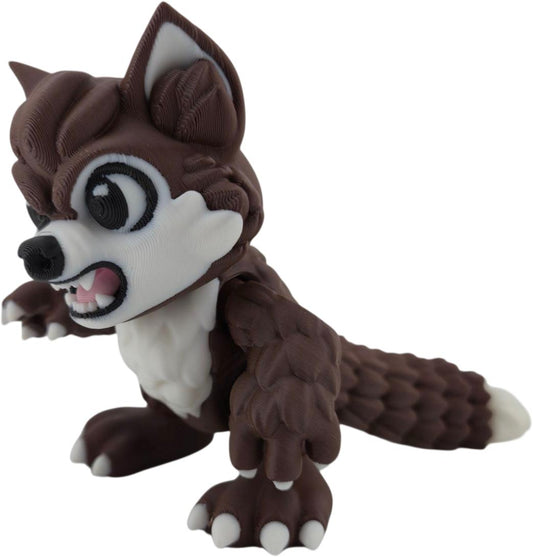 Articulated Werewolf Figure, 4 Inch Brown and White Poseable 3D Printed Character