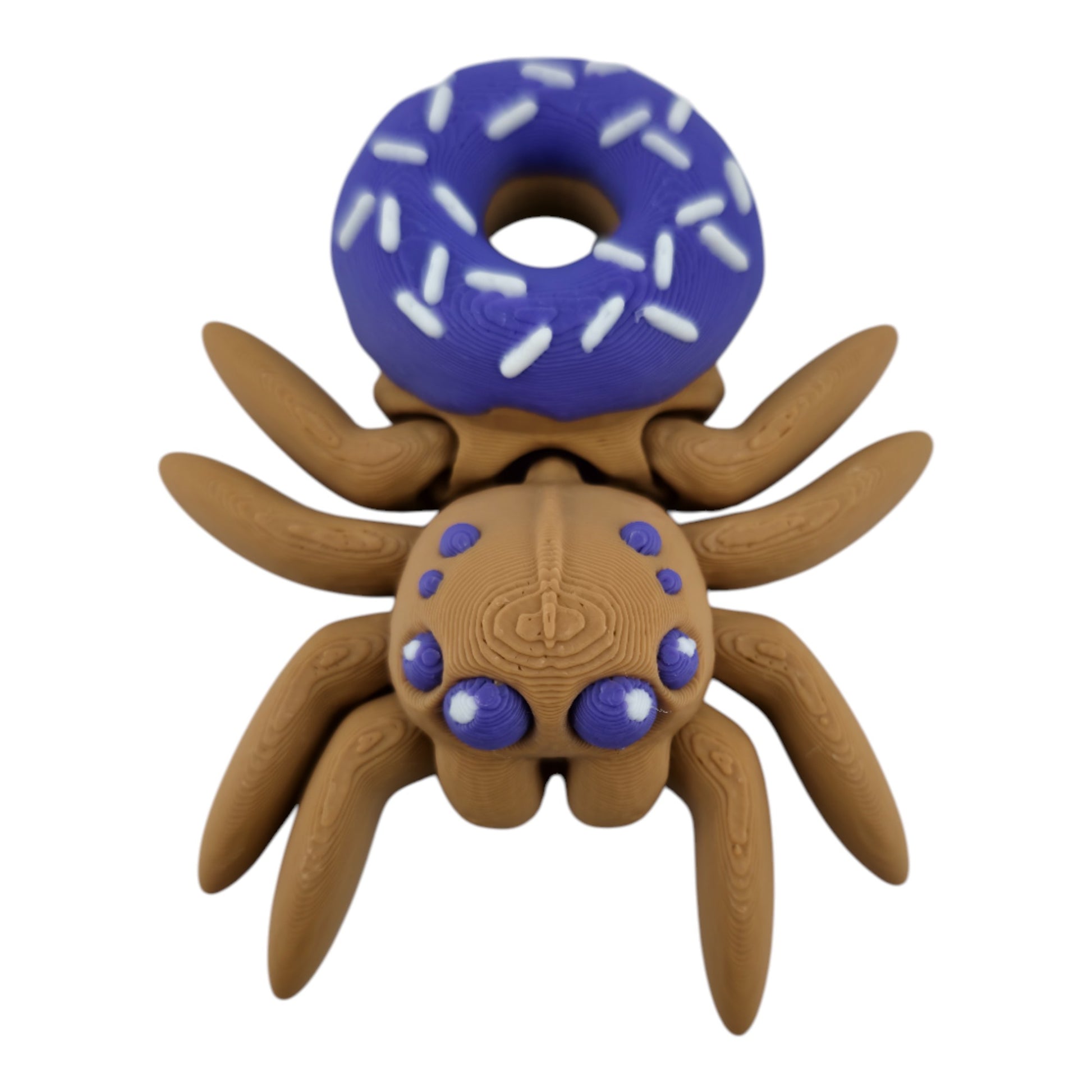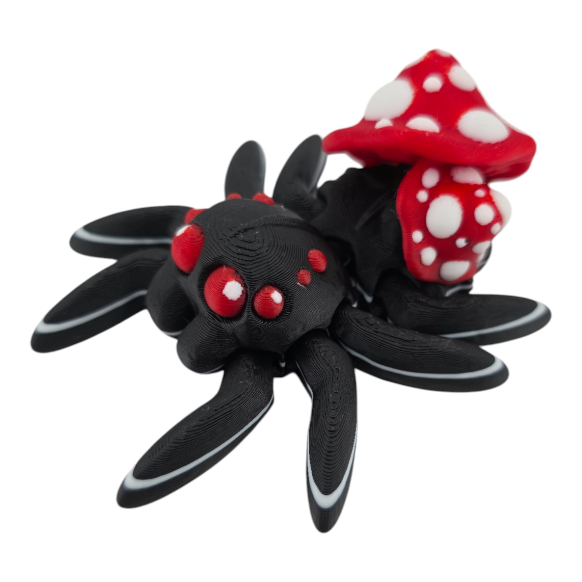 These large articulated spiders are available in four enchanting styles: the Rose Spider with delicate floral patterns, the Heart Spider with love-inspired details, the Donut Spider with sweet, playful charm, and the Mushroom Spider with whimsical forest-inspired accents. Each features multiple movable joints for lifelike posing and dynamic display, making them as fun to fidget with as they are eye-catching on a desk or shelf. Carefully 3D printed for smooth articulation and crisp detail, these gothic yet whimsical spiders combine impressive size with intricate styling, creating unique pieces that stand out in any collection.