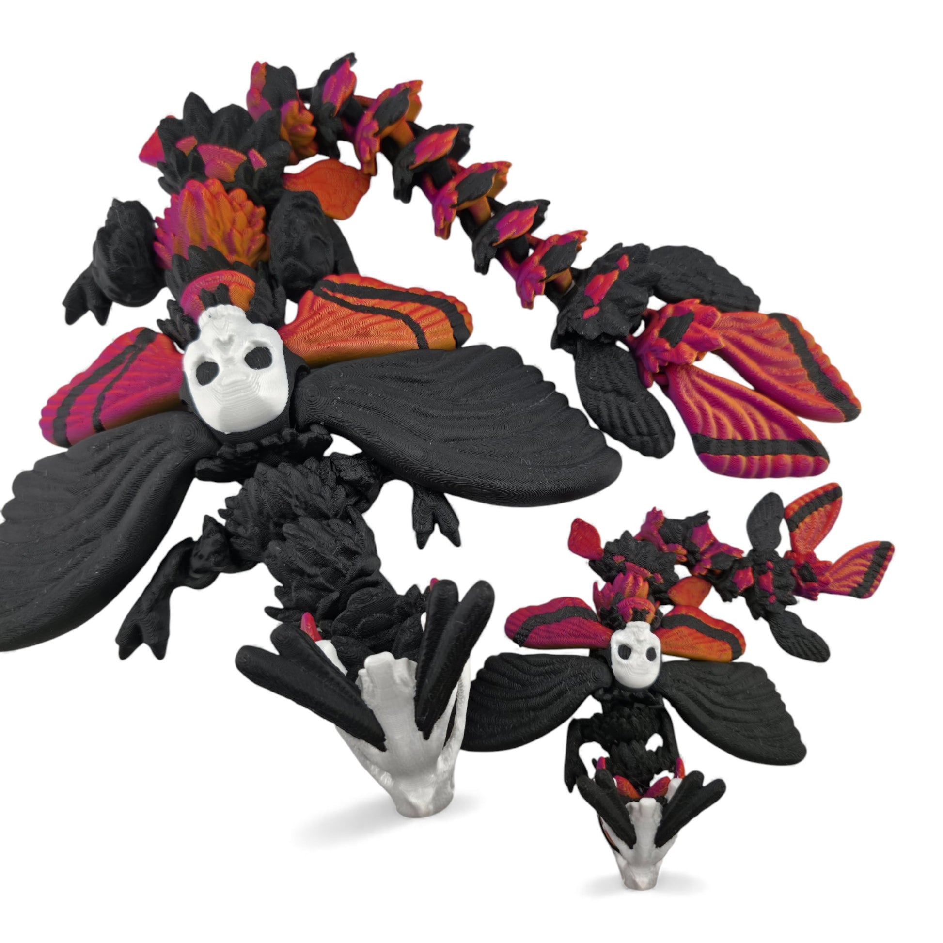 Moth Head Dragon Set – Adult & Baby Articulated 3D Printed Dragons | Afterglow Red & Black Fantasy Gradient