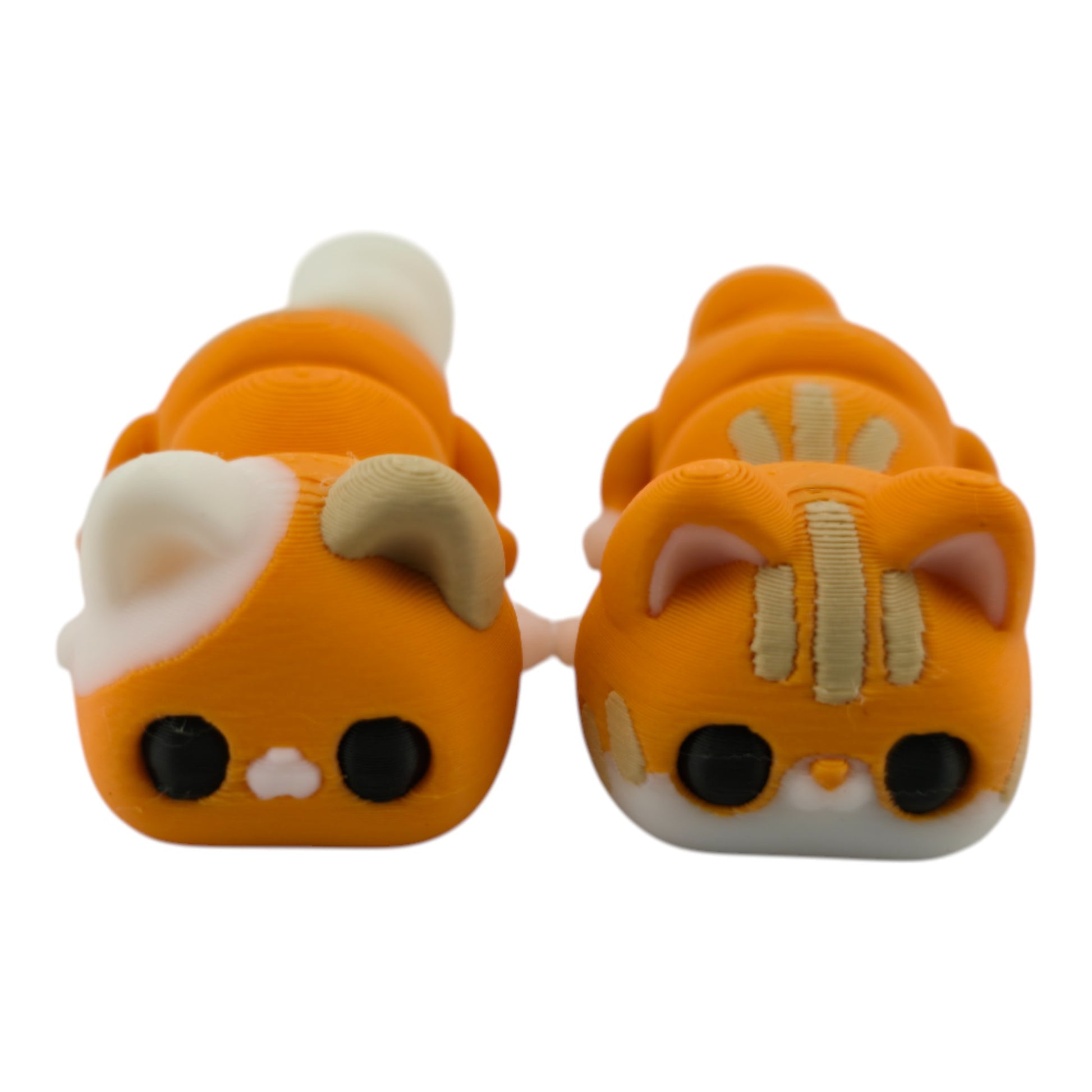 This 3D printed cat captures the charm of an orange and white tabby—or a soft calico—brought to life through a unique, stacked color design. With its smooth finish and rounded form, this cat makes a perfect addition to any desk, shelf, or cozy display space.