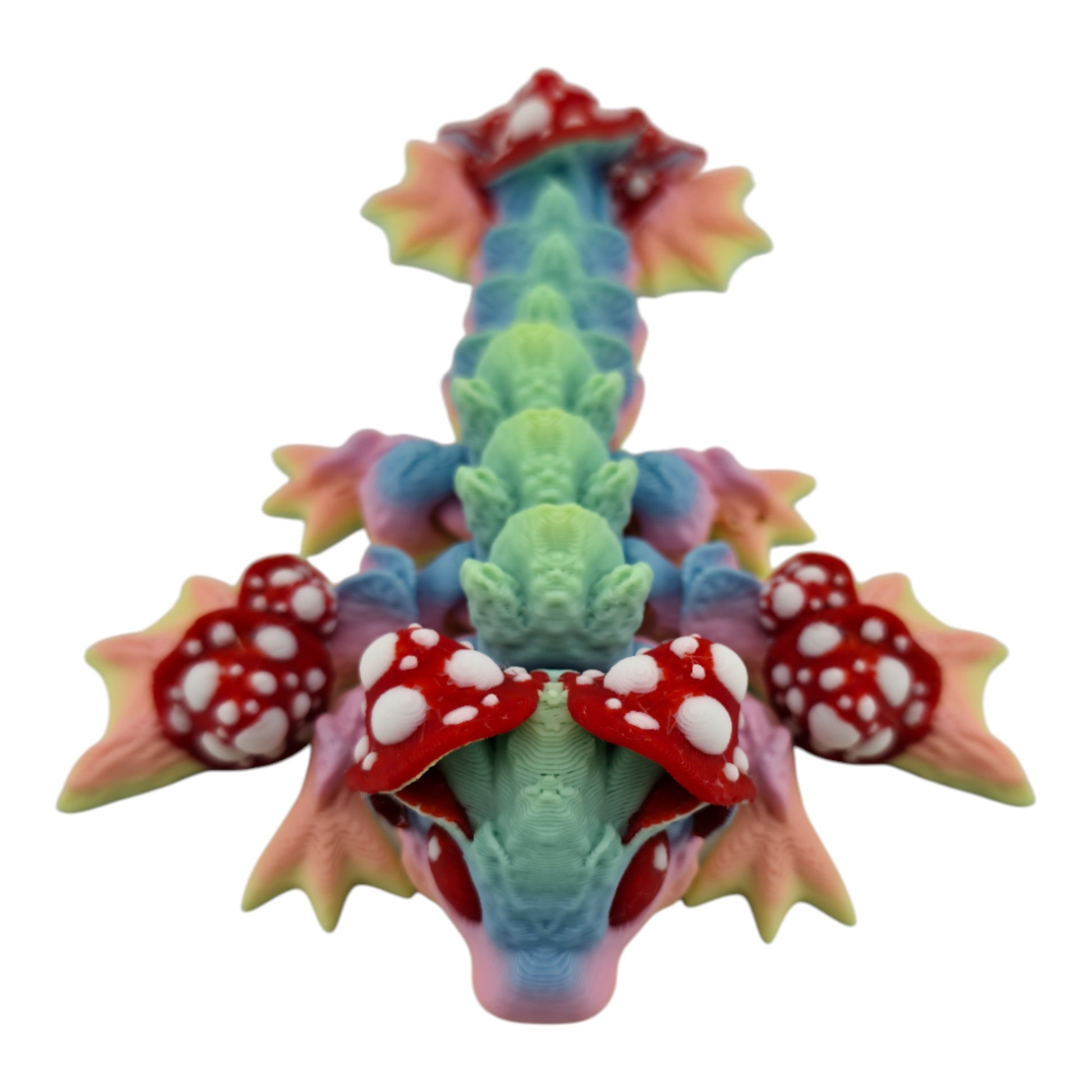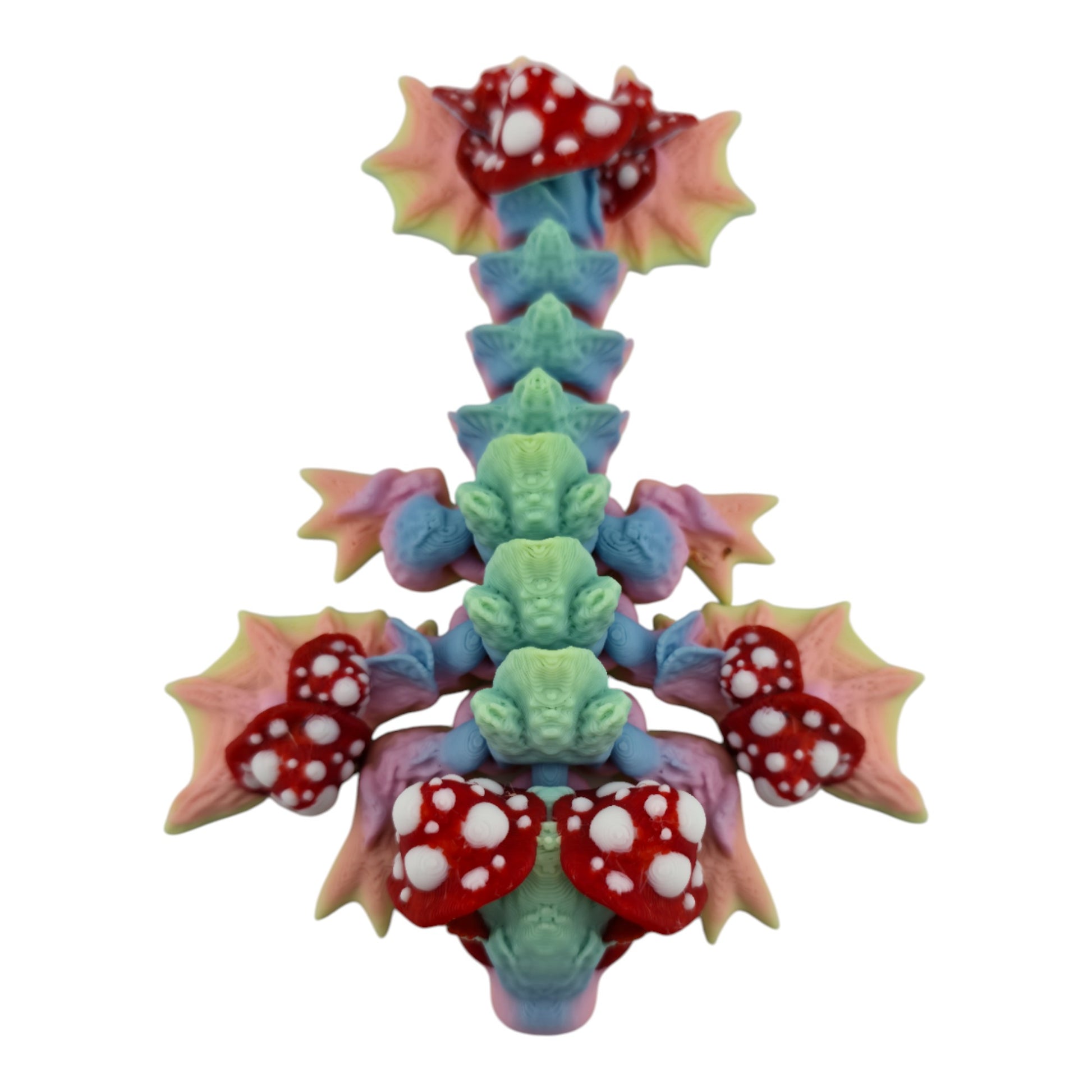 Crafted with movable joints, the Mushroom Dragon’s flexible, poseable body allows for dynamic display and interactive arrangement, making it perfect for collectors and nature-inspired decor. Each piece is precisely 3D printed to showcase delicate details and smooth articulation, available in either a classic white finish or an enchanting pastel rainbow gradient.